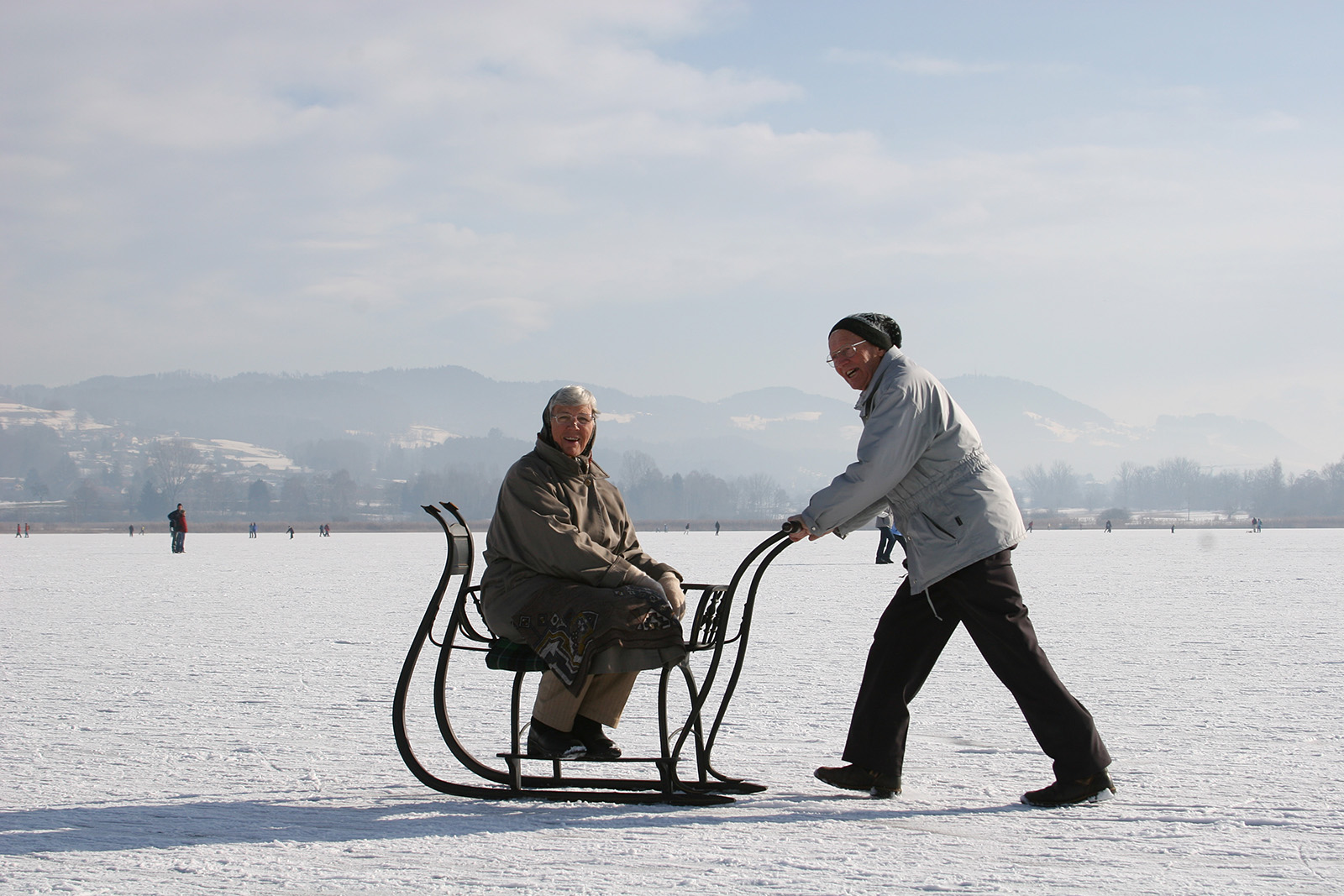 Unvergesslich wird uns als drittes Ereignis die Pfäffiker Seegfrörni bleiben. Unbescheiden wie wir sind, kam es uns so vor, als wolle Pfäffikon zeigen, wie schön es doch hier sei. Bei strahlendem Winterwetter unternahmen wir stundenlange Wanderungen auf dem See. Einziger Wermutstropfen war die Inversionslage, welche zu einer spürbaren Feinstaubbelastung führte.
