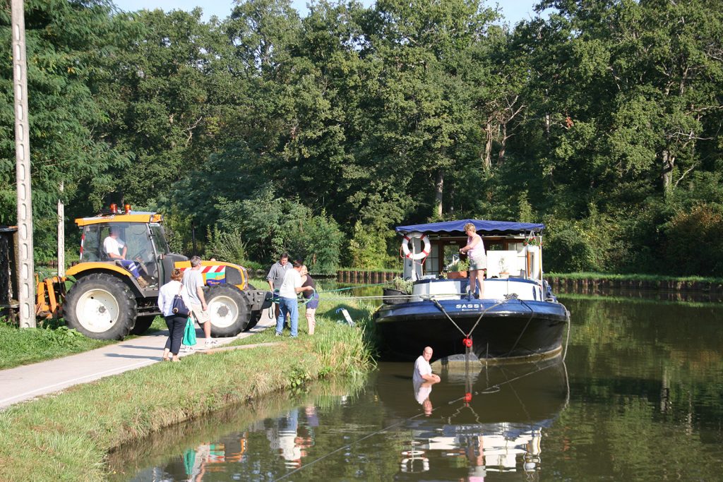 Am nächsten Tag treffen wir auf Bob und Christine mit ihrer «Sassi», die wir schon in St-Symphorien getroffen hatten. Sie sind auf ein verborgen unter Wasser liegendes Hindernis aufgelaufen und haben dabei ihr Steuerruder beschädigt.