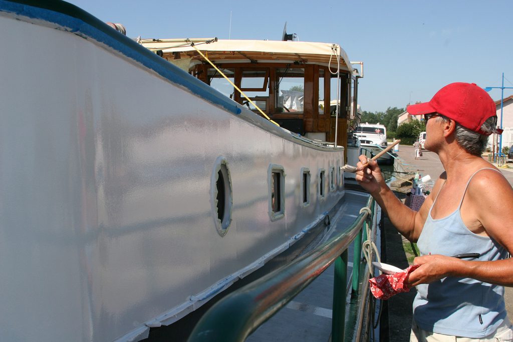 Nach den Schweissarbeiten streichen wir nicht nur die neu aufgeschweissten Stahlplatten, sondern auch die Rumpfseiten, die Reling, die Handläufe und die Wände des «Hauses». Ferner tanken wir Diesel, ersetzen die leeren Gasflaschen und füllen unsere Lebensmittelvorräte auf, denn – so liest man in allen Berichten über den Canal de Bourgogne – die Einkaufsmöglichkeiten auf der vor uns liegenden Route seien beschränkt. Später wird sich herausstellen, dass dies so nicht zutrifft.