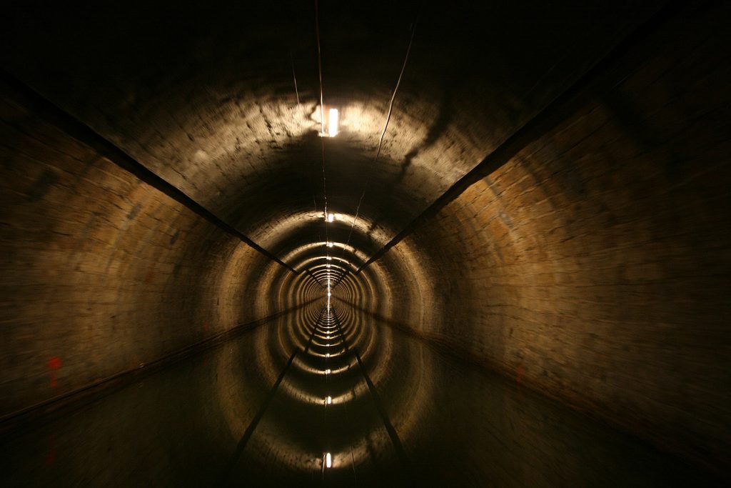 Der Tunnel ist seit kurzem beleuchtet und, da er völlig gerade verläuft, sehen wir in 3.3 km Entfernung sogar den Tunnelausgang.
