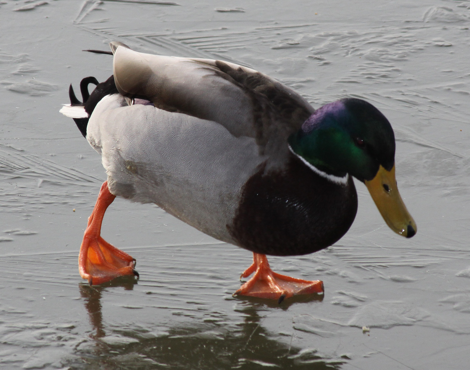 Die Winterkälte lässt das Hafenbecken wieder zufrieren und die Enten üben «Landen auf dem Eis».