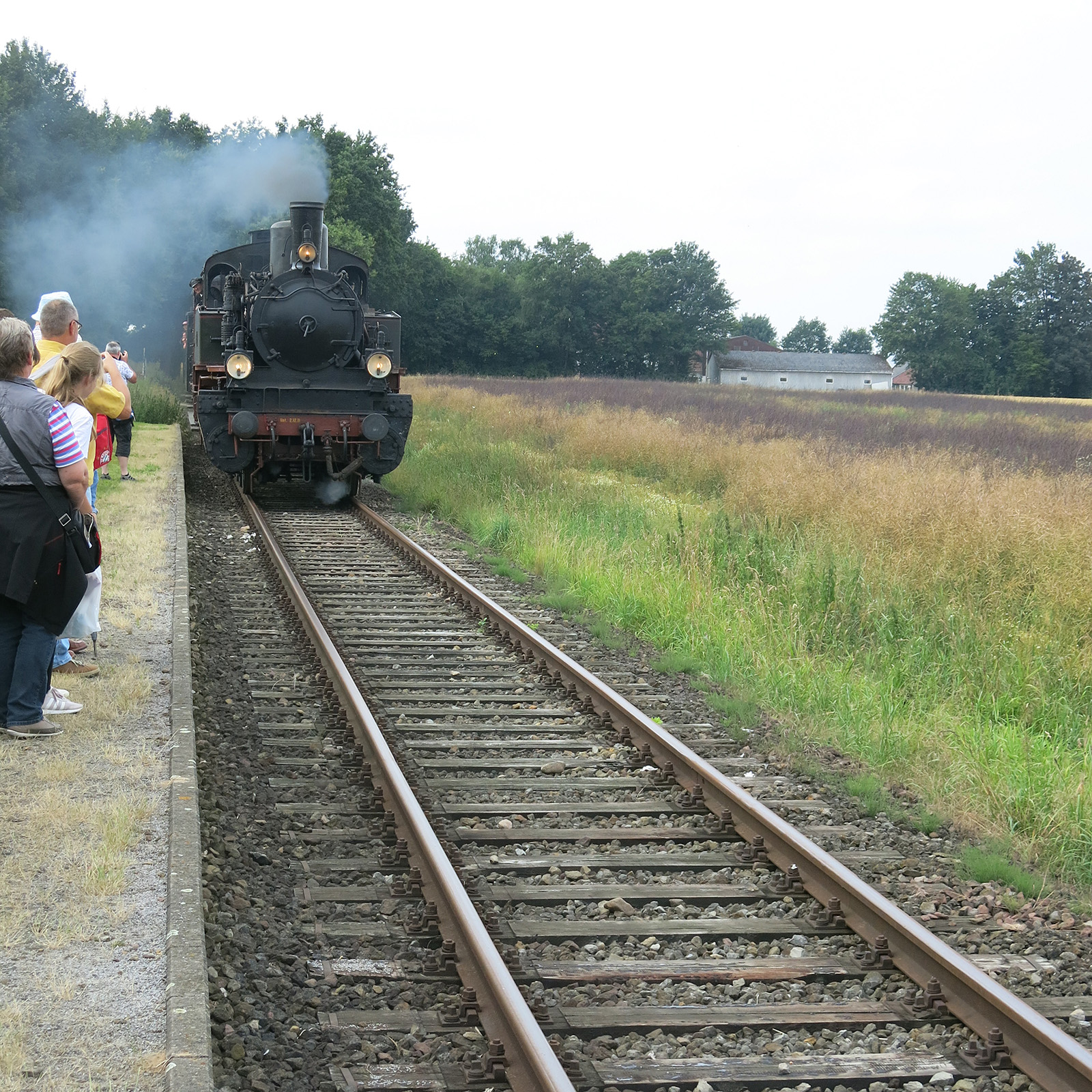 Für einen Dampflokfan wie Christian ist eine Fahrt mit der Museums-Eisenbahn Minden ein absolutes Muss. Diese Museums-Eisenbahn mit dem berühmten «Preussenzug» zählt zu den älteren Museumseisenbahnen Deutschlands. Gefahren wird auf den Strecken der Mindener Kreisbahnen und der Wittlager Kreisbahn. Von Südhemmern zurück nach Minden fahren wir deshalb mit der Museumseisenbahn, vorbei an Kornfeldern, wo bereits Dreschmaschinen unterwegs sind.