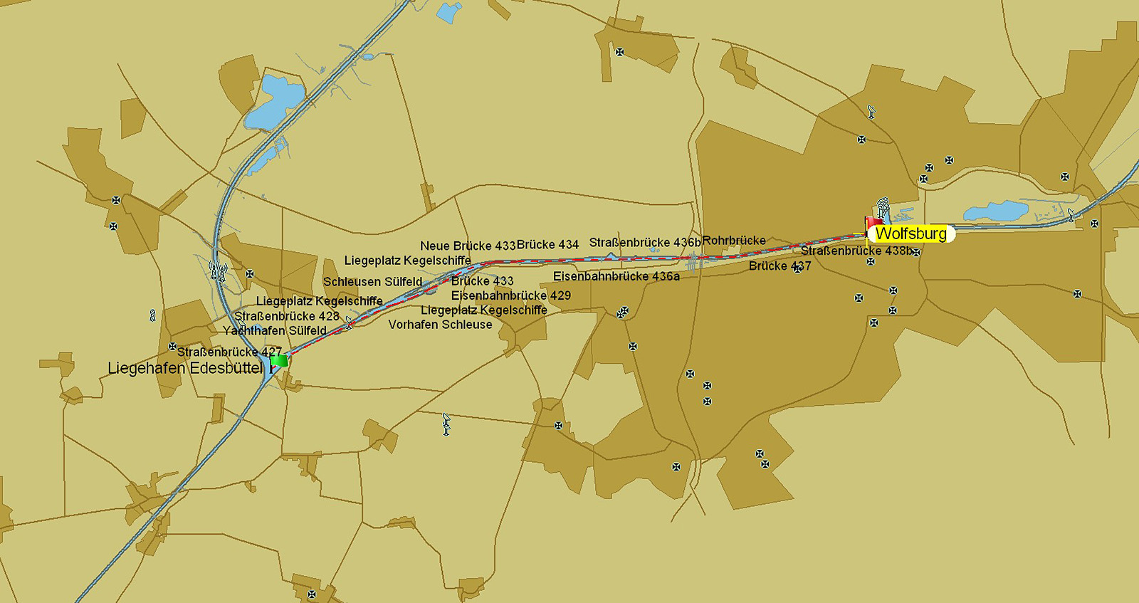 - Liegestelle Edesbüttel. Lange Kade für die Berufsschifffahrt mit einigen Stromzapfstellen (Wertkarte). Hinter der Böschung Freibad. Einkaufsmöglichkeiten in der nahen Ortschaft Calberlah.
